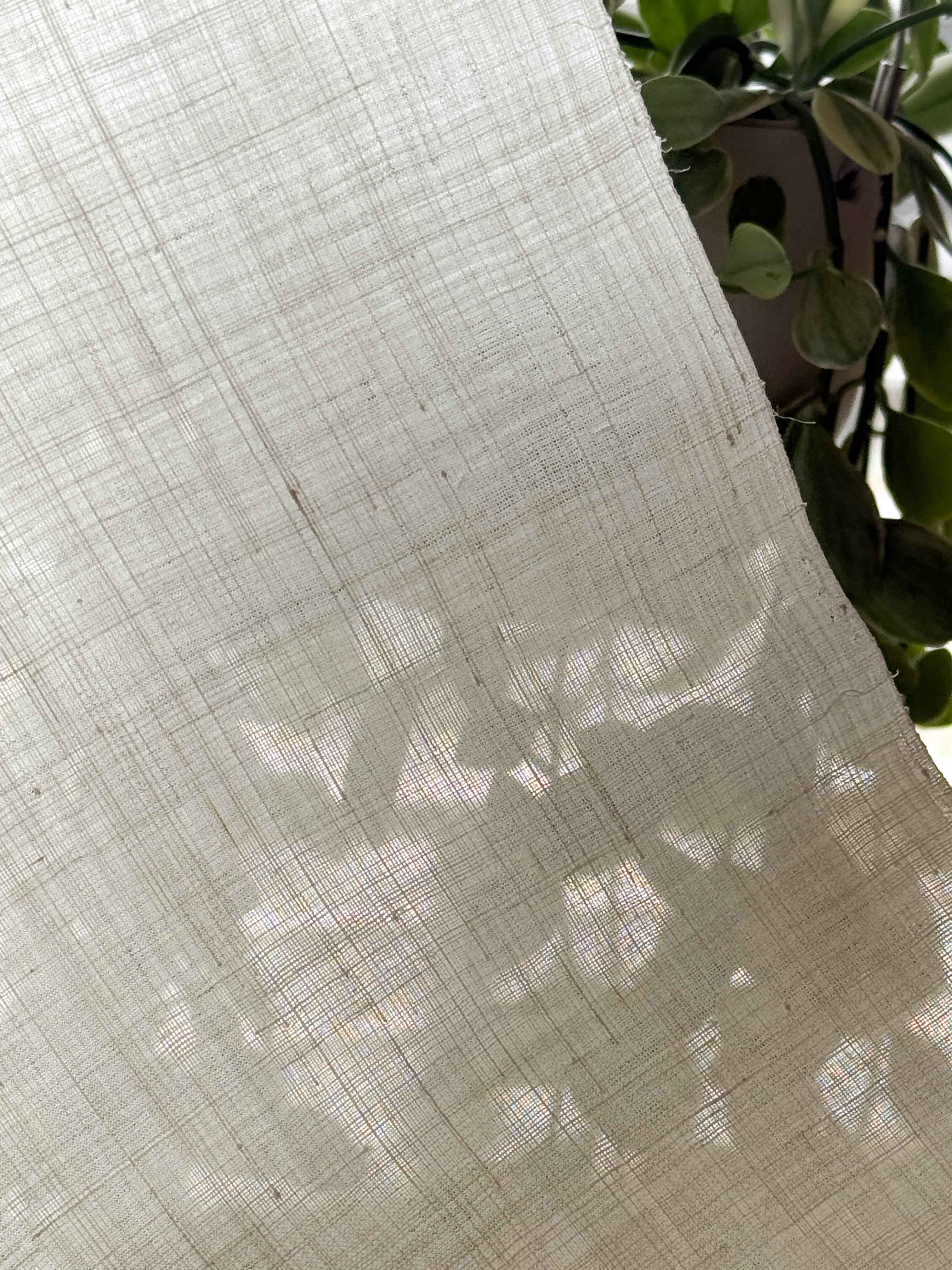 さらりとした肌触りと適度な透け感が感じられるこの生地は、落ち着いた風合いで、光を通すと涼やかで上品な表情を見せます。どんなスタイルにも調和し、空間をより快適で洗練されたものにしてくれます。