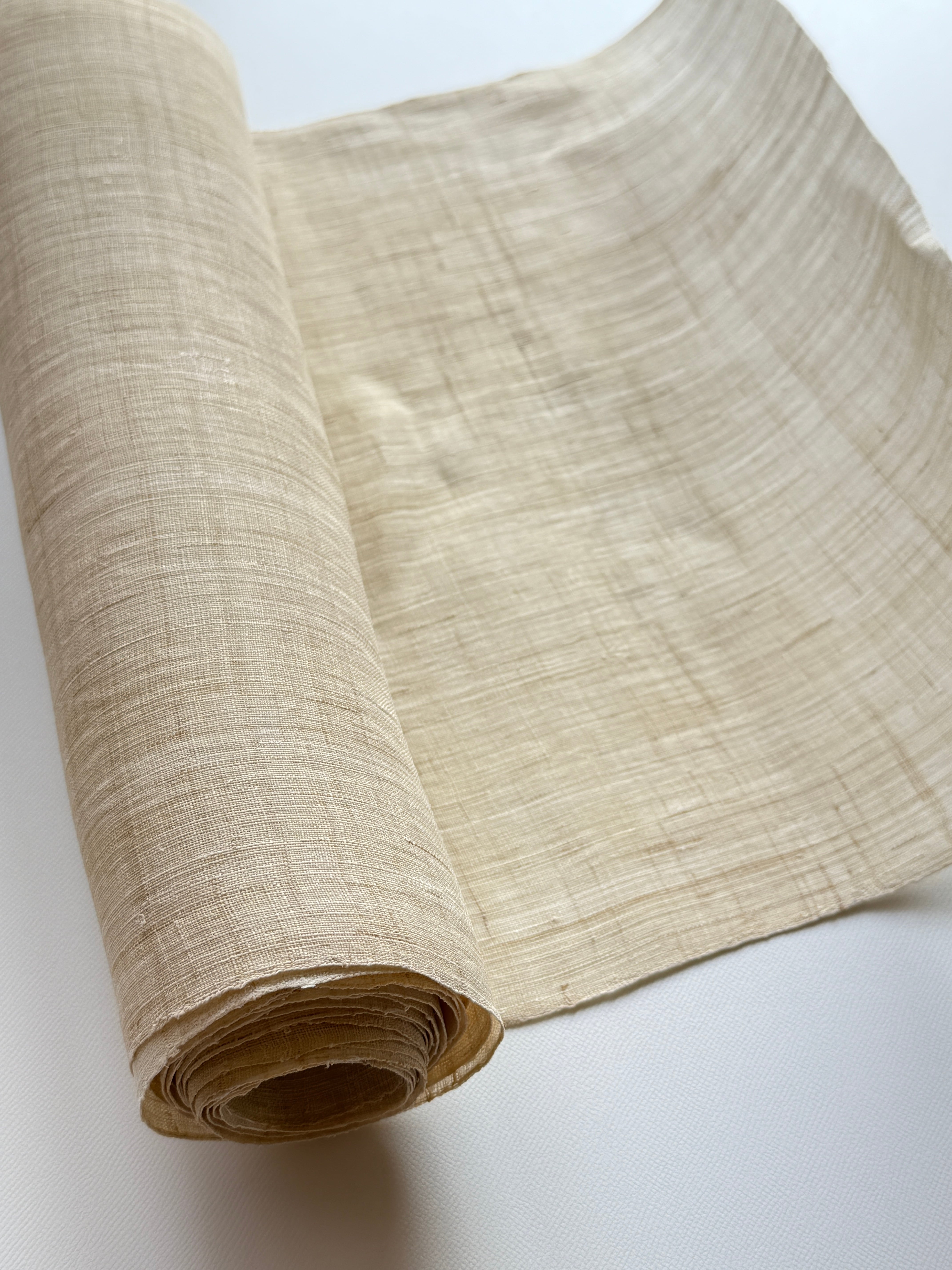 さらりとした肌触りと適度な透け感が感じられるこの生地は、落ち着いた風合いで、光を通すと涼やかで上品な表情を見せます。どんなスタイルにも調和し、空間をより快適で洗練されたものにしてくれます。