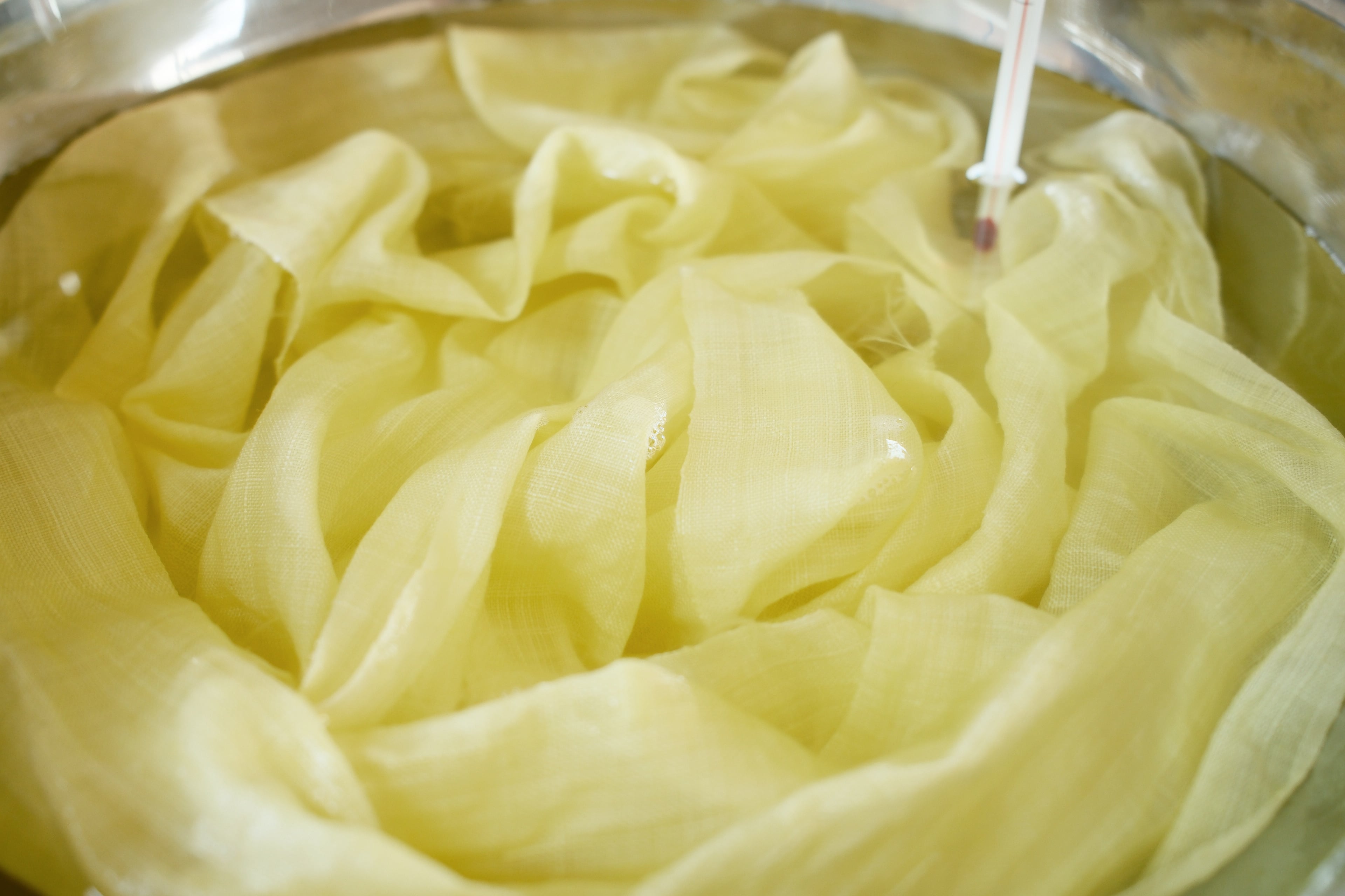 この商品は、@rocca.endoさんが心を込めて染め上げた特別なモシ生地です。濃い黄色、黄色、薄い黄色の3色をご用意しており、それぞれが持つ美しい色合いと独自の風合いが、様々なシーンで大活躍します。