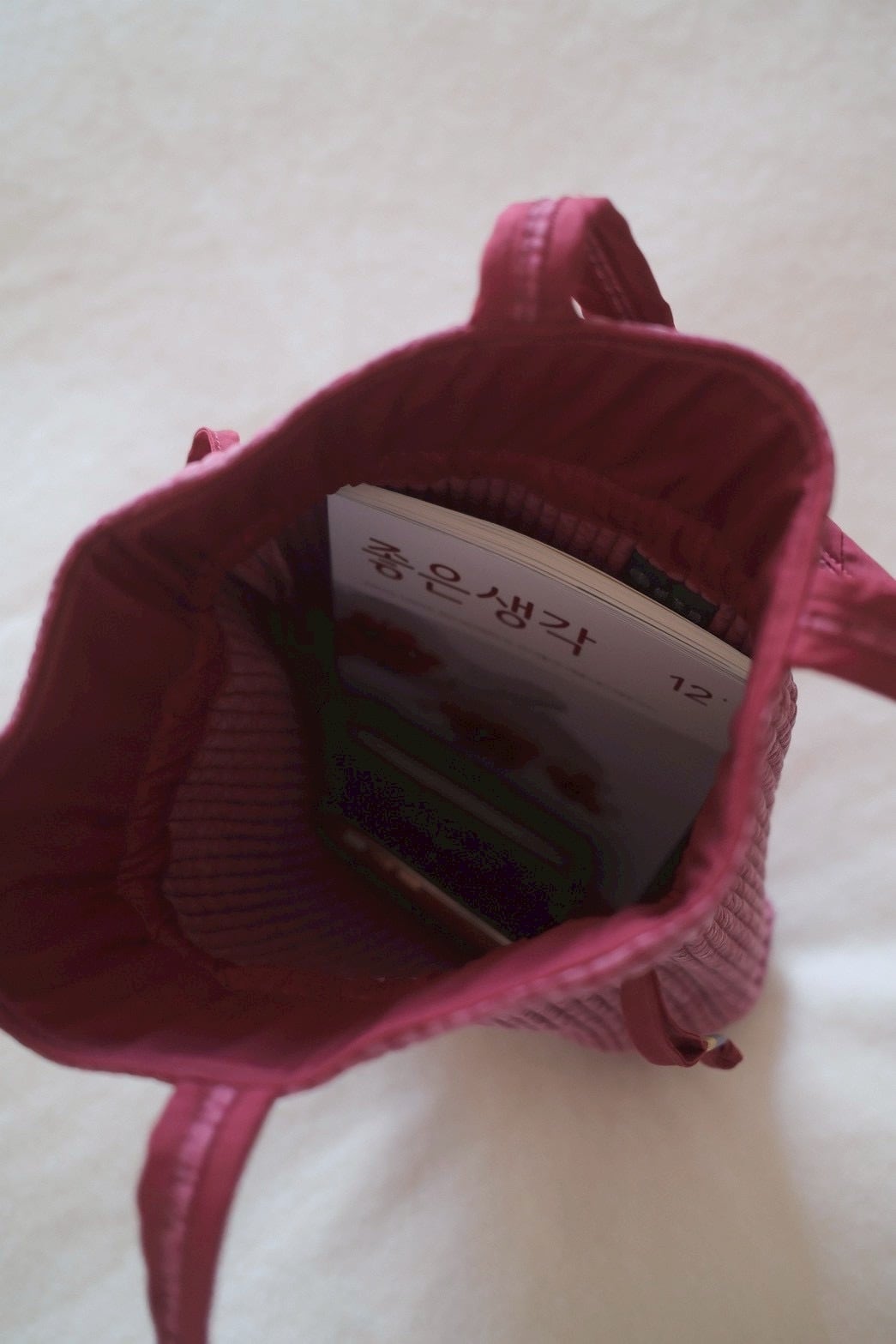内ポケットなどはあえて付けず、ヌビの柔らかさと軽さをそのまま活かしたつくり。