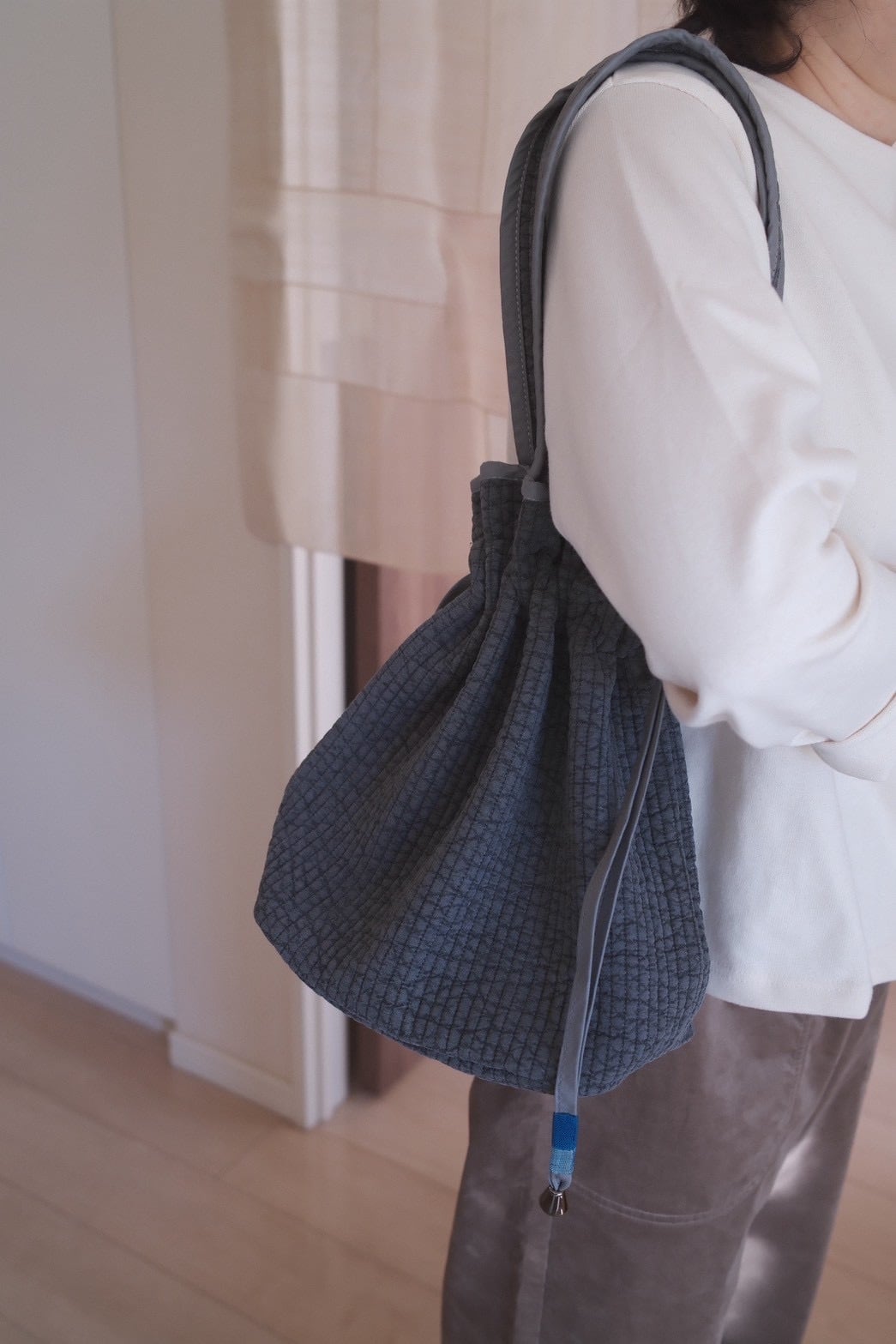 内ポケットなどはあえて付けず、ヌビの柔らかさと軽さをそのまま活かしたつくり。