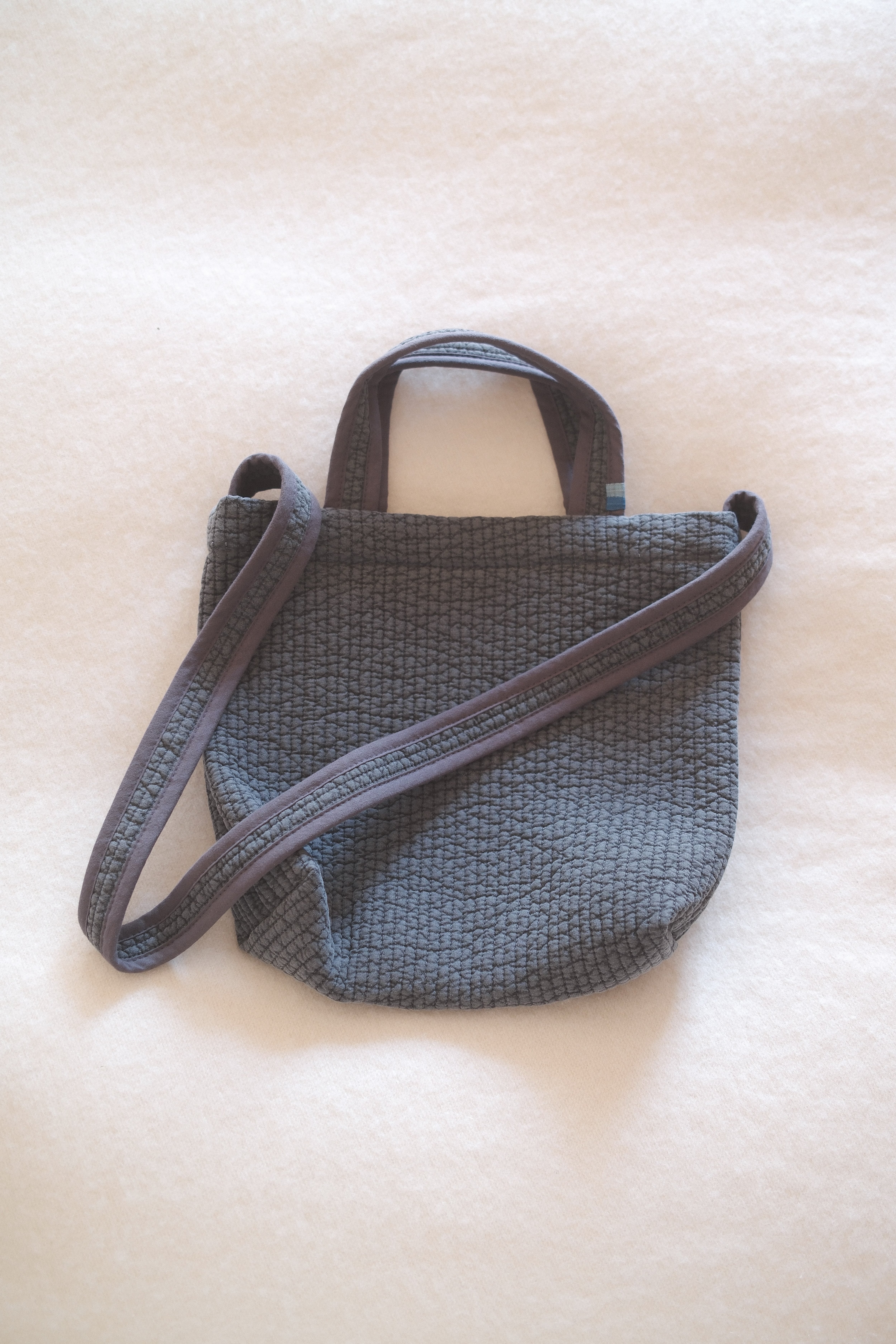 ヌビ特有の温かみが感じられるふっくらとした仕上がりと、驚くほどの軽さは、持つたびに“やさしい心地よさ”を実感させてくれます。深みのあるチャコールグレーは、日常の装いにシックに寄り添い、コーディネートを引き締めてくれる一品です。